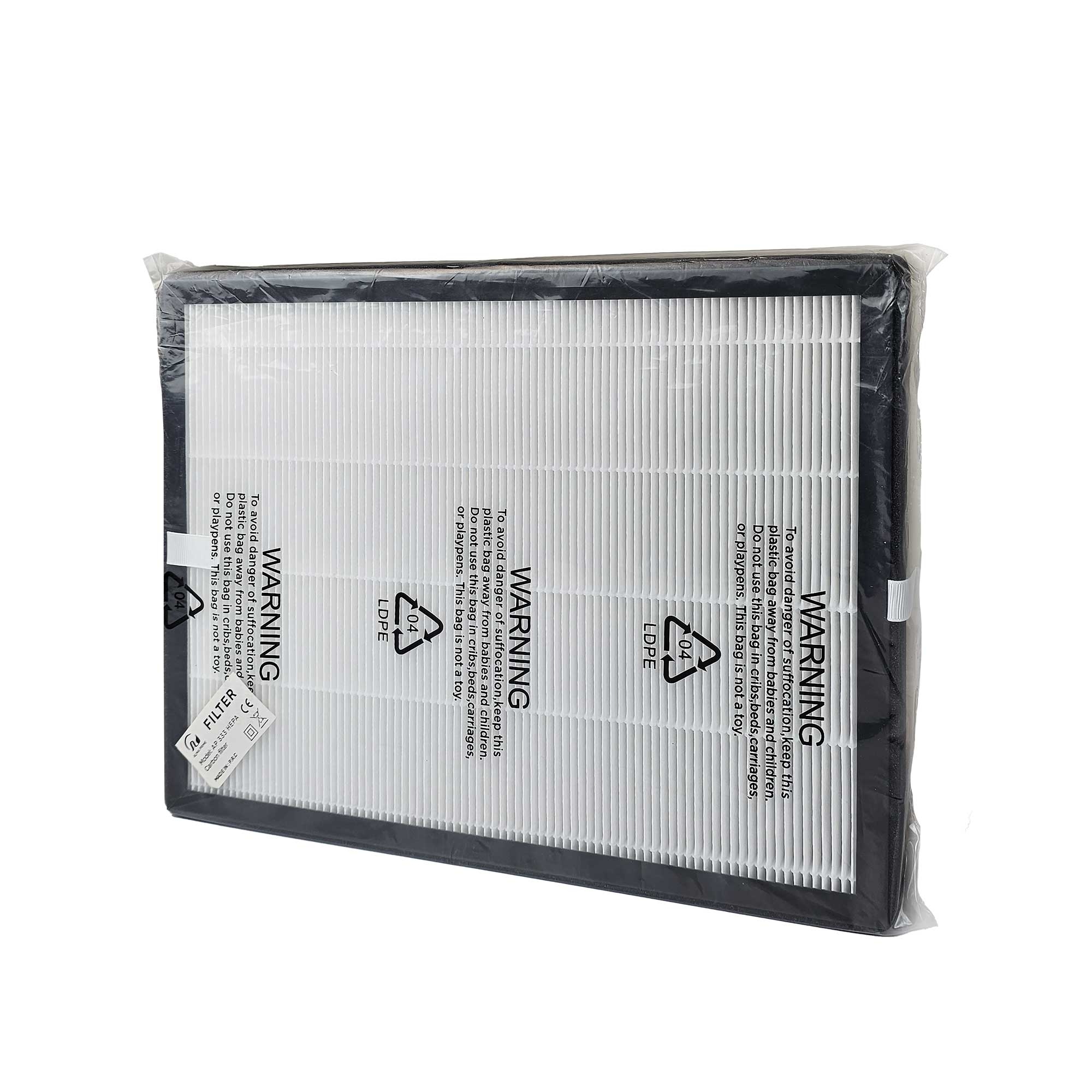 - لایه هپا: این لایه که بخش سفید رنگ فیلتر را تشکیل میدهد، وظیفه شکار ذرات جامد را دارد. الیاف متراکم آن تا ۹۹.۹۷٪ از ریزگردها، گرده گیاهان، شوره حیوانات و ذرات آلرژیزا (PM2.5) را به دام انداخته و هوایی استریل تحویل میدهد.