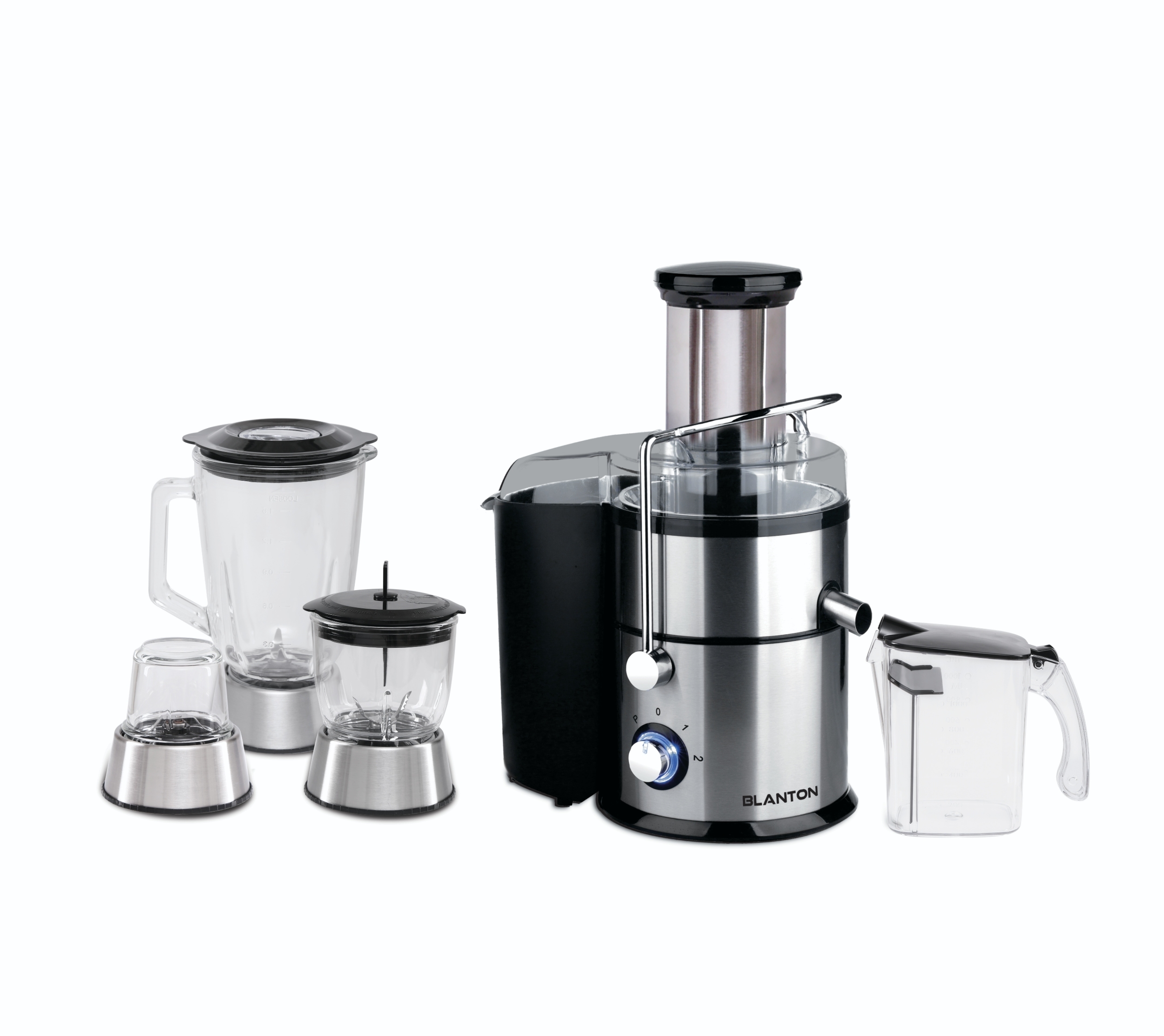 آبمیوه گیری 4 کاره آنالوگ، 800وات، دارای پارچ مخلوط کن و خردکن و آسیاب پیرکس با پایه استیل، تیغه های استیل ضد زنگ، 2 سرعت، دارای کلید توربو، سیستم ضدچکه