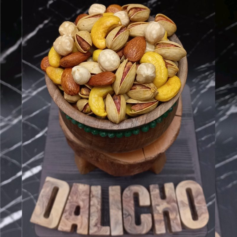 آجیل 4مغز شور با ترکیب پسته باپوست اکبری زعفرانی (یا پسته کله قوچی زعفرانی)، مغز بادام شور درشت، مغز فندق سفید تُرک درشت و بادام هندی زعفرانی درشت تهیه شده که وزن پسته، مغز بادام و بادام هندی هر کدام 260 گرم و وزن مغز فندق 220 گرم است.